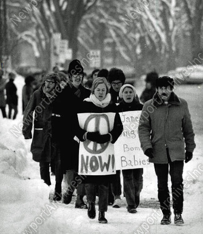 On December 12, 1969, the group leafleted all Honeywell plants in the Twin Cities. Demonstrators picketed Headquarters and then went downtown to leaflet Christmas shoppers. (Davidov)
