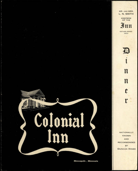 It was in 1933 that the Smiths took over the restaurant. L. Norwood and Clara W. Smith had lost all their money in 1932, and started over by opening a small upstairs cafeteria called the Dutch Inn on So. 6th Street in downtown Minneapolis. They served “businessmen’s lunches” for 25 cents, featuring chicken pot pies that became one of her specialties. When they took over the Colonial Inn, Mrs. Smith remembered that it was surrounded by gravel pits. In 1935 they were able to buy it. For awhile they ran both places, but soon sold the Minneapolis restaurant and paid off the St. Louis Park property in two years.